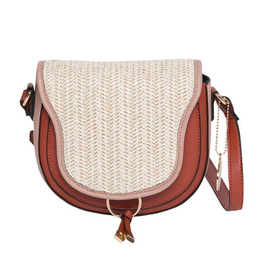 Sac bandoulière femme de la marque Manoukian Sangle bandoulière réglable Fermeture à rabat 1 compartiment Coloris : Rose/raphia Synthétique Dim : 20 x 17 x 8 cm