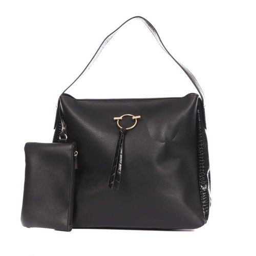 Optez pour le sac femme de la marque Manoukian modèle Gipsy Coloris : Noir Fermeture à Zip Bandoulière Cotés imitation reptile 1 petit pochette amovible Synthétique Dimensions : 42 x 33 x 13cm