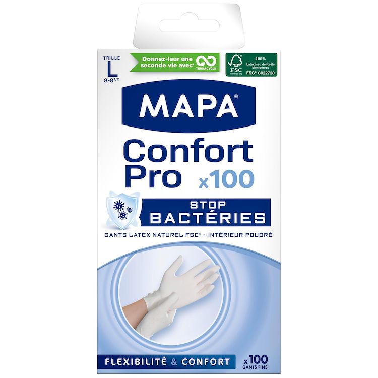 Boîte distributrice de 100 gants en latex naturel FSC, non poudrés