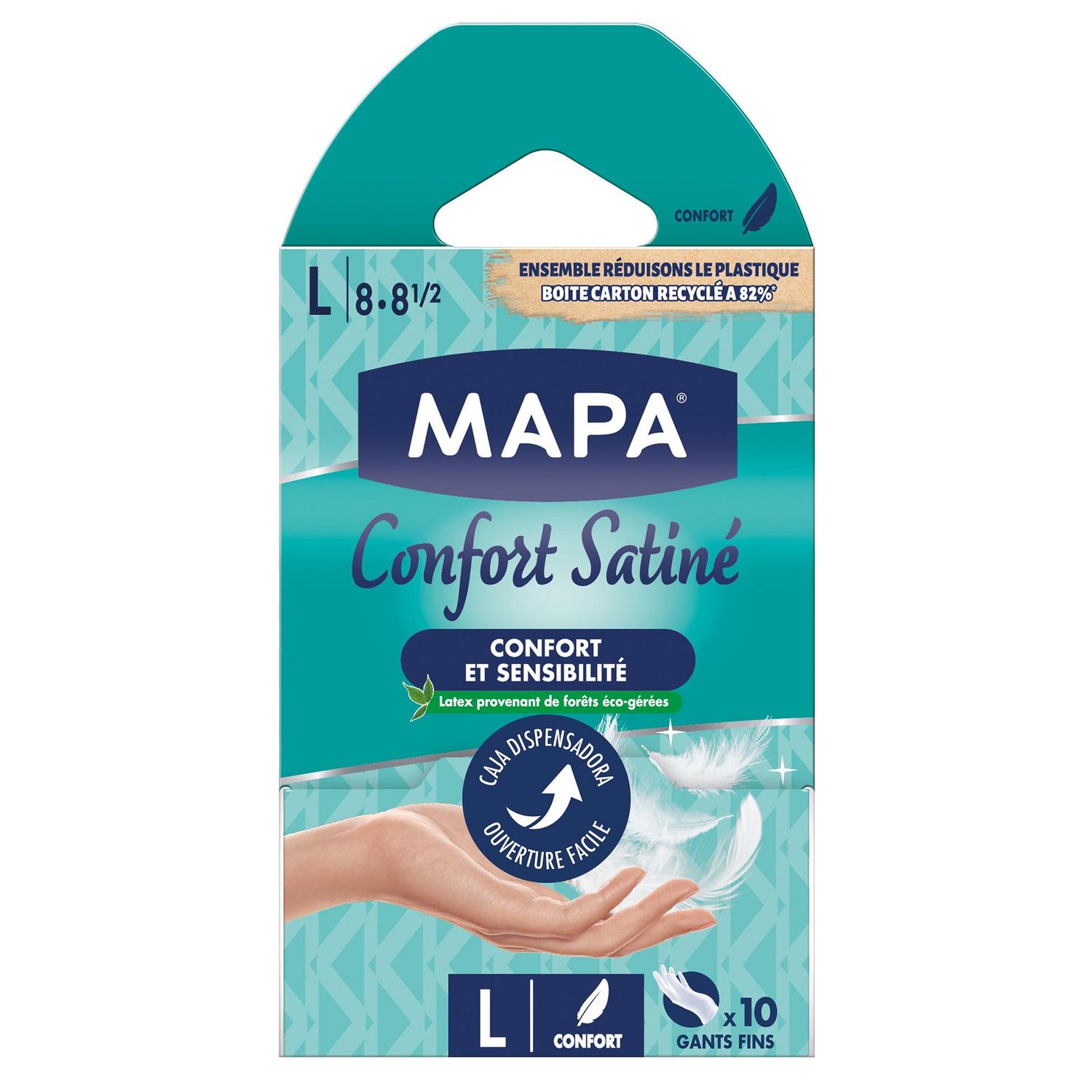 Boîte distributrice de 10 gants en latex naturel satiné, non poudrés
