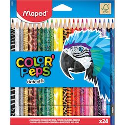 Les crayons de coloriage de la gamme Color'Peps Maped ont une forme triangulaire qui facilite la prise en main des enfants. En bois, ces crayons possèdent une mine résistante et sont faciles à tailler pour une utilisation quotidienne simple et confortable. Avec ces 24 crayons de couleur Animals, offrez à votre enfant un incontournable de la trousse dans une version originale et créative.