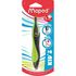 Chape ergonomique conçue pour l'apprentissage. Zone de préhension bi-matière antidérapante. Pointe sécurité + 1 mine de rechange fournie.