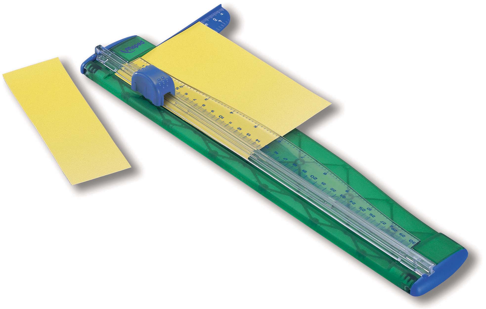 Massicot coupes droites. Patins anti-dérapant avec 2 lames offertes. Pratique : facile à utiliser et à ranger. Réglette en cm en en pouces.