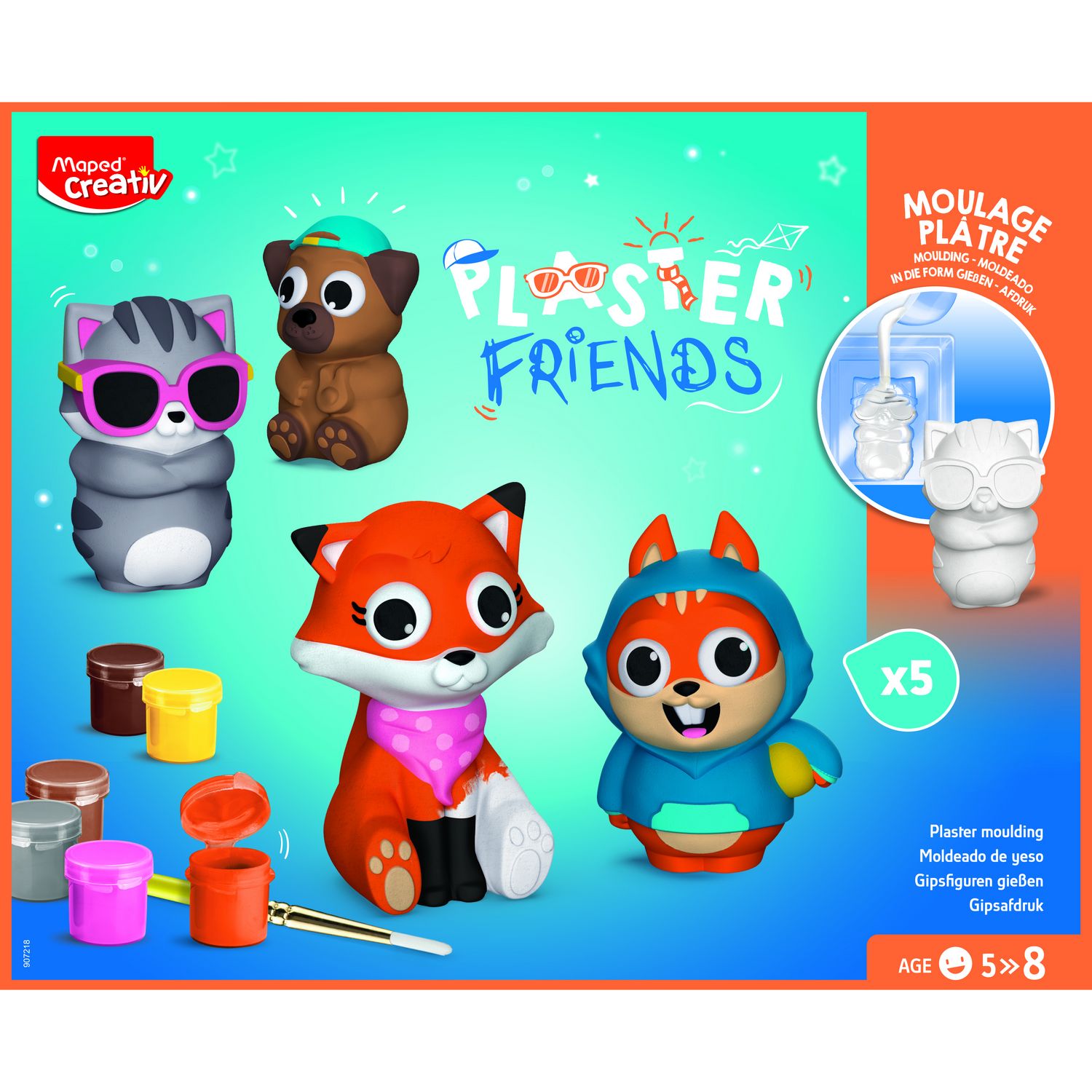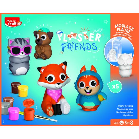 PLASTER FRIENDSAGE : 5 +Plongez dans une activité incontournable en compagnie d'animaux tout simplement craquants à réaliser et collectionner sans modération ! Un kit complet pour mouler des animaux et les customiser. Les animaux sont grands pour faciliter la peinture avec les enfants.
