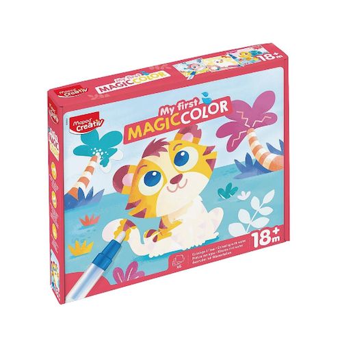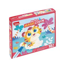 Mon Premier Magic Color (réf. HER906904) est un kit d'initiation au coloriage à l'eau spécialement conçu pour les tout-petits à partir de 18 mois. Ce coffret compact comprend 6 grandes feuilles illustrées et un stylo/ pinceau à eau rechargeable qui révèle les couleurs lorsqu'on passe la pointe humid