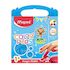 dapté aux enfants de moins de 3 ans. Testés dermatologiquement. Texture crémeuse. Pots plastiques de 80g. 4 couleurs vives, jaune, vert, rouge bleu, hautement pigmentées. Très fort pouvoir couvrant. Bouchon permettant d'éviter aux couleurs de se mélanger. Conseil tâches : lavage immédiat à froid. De
