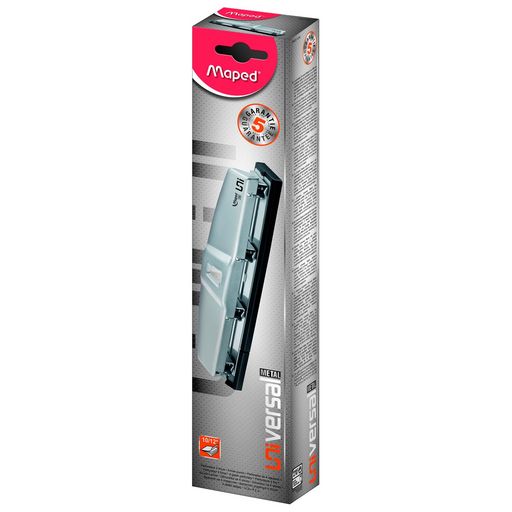 Perforateur 100% métal. Capacité de perforation : 10 feuilles de 80g/m², 12 feuilles de 70g/m². Réserve à confettis. Garantie 5 ans