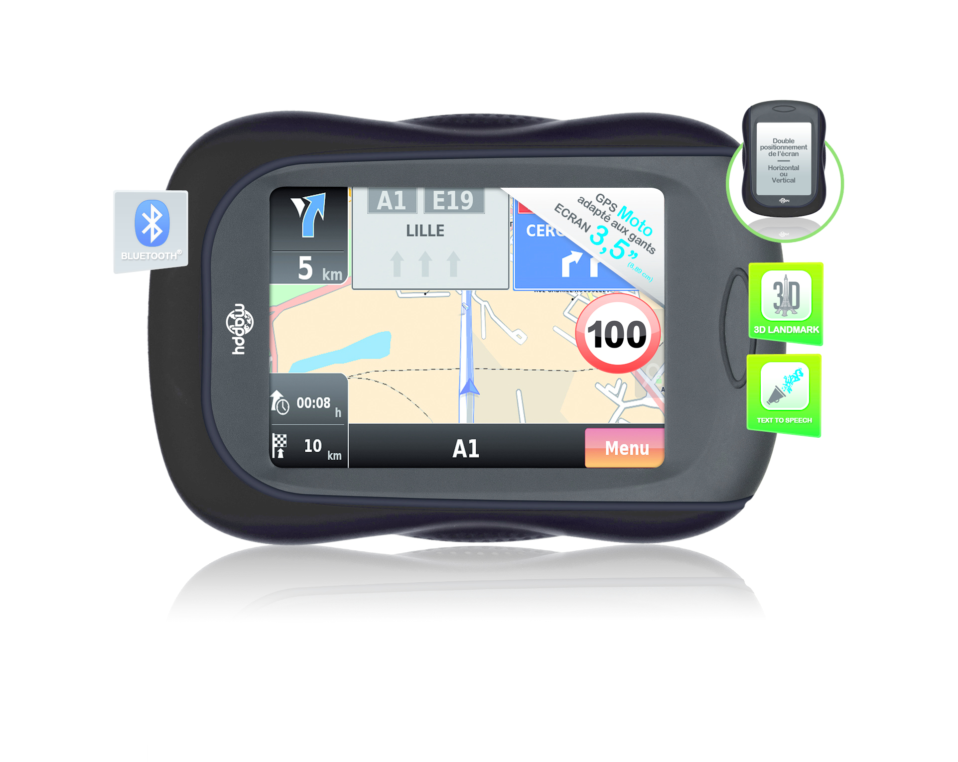 Spécial moto - Ecran 3.5 pouces - Europe 22 pays - Bluetooth - Monuments en 3D - Ecran vertical ou horizontal - Points d'intérêts guide du Routard