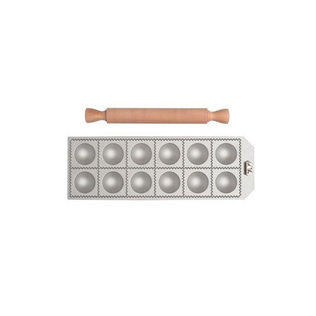 Marcato RA-T55X12-CLS Moule 12 raviolis ronds Classic Marcato RA-T55X12-CLS. Réalisez facilement vos raviolis grâce à ce moule ! Les tablettes pour raviolis de la ligne Marcato Classic sont disponibles en 2 formes : carrée (4 dimensions) et rondes (2 dimensions) soit 6 formes de raviolis au total. Moule en aluminium moulé sous pression, un matériau pour aliments solides qui assure un coupe nette de la feuille de pâtes. Livré avec un rouleau en bois massif de poirier. Ce type de bois a été choisi pour sa durabilité et sa robustesse. Avec ce moule, réalisez 12 raviolis ronds de 5.5 cm de diamètre !