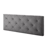 Tapissé avec le tissu 100% de polyester dans la gris clair avec la broderie de diamant.Structure rigide de contreplaqué qui allège le poids de la tête de lit pour l'ancrer facilement au mur.Rembourré avec de la mousse sur tout le devant et les côtés. Le dos est recouvert d'un tissu respirant noir.In