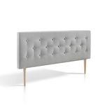 Tissu d'ameublement matelassée gris avec la même couleur et disponible en différentes tailles. Pieds de style nordique hêtre naturel.Structure rigide de contre-plaqué qui allège le poids de l'en-tête pour l'ancrer à la paroi facilement.Rembourrage en mousse HR pour le front et les coins. Retour doub