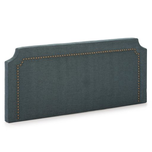 Tapissée en tissus couleur Bleu avec clous en marron veilli et disponible en plusieurs dimensions.Structure rigide en contreplaqué qui allège le poids de la tête de lit pour l'ancrer facilement au mur.Matelassé avec mousse HR pour la partie frontale et coins. Arrière doublée en tissus transpirable e