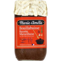 Ingrédients : Bouillon, filets de POISSONS (300g minimum de 3 espèces différentes selon arrivage). Bouillon : eau, POISSONS, CRABES, concentré de tomates, oignon, sel, huile d'olive vierge extra, ail, épaississants : gomme de guar et gomme xanthane, épices (dont safran), arôme naturel d'épices.