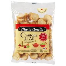 Pour compléter soupes et salades, retrouvez tout le croustillant et le goût des croûtons à l’ail Marie-Amélie, élaborés sans huile de palme.