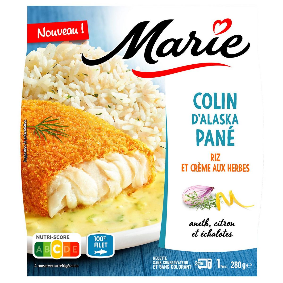 Marie sélectionne un Colin d'Alaska 100% filet. Marie cuisine son riz avec quelques zestes de citron. Le tout est accompagné d'une sauce crémeuse aux échalotes et à l'aneth. cette recette est cuisinée sans conservateur et sans colorant.