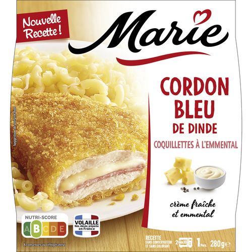 Cordon bleu de dinde, Coquillettes à l'emmental 280g MARIE