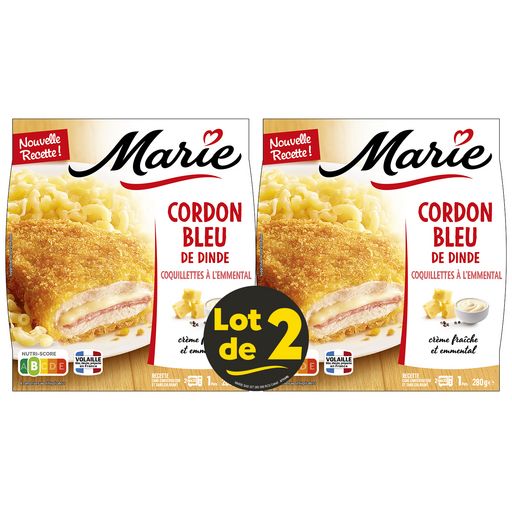 LOT DE 2 CORDON BLEU DE DINDE, COQUILLETTES A L'EMMENTAL 2X280G MARIE
