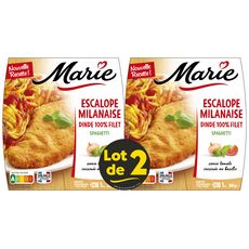 Bonjour, Nous vous remercions d'avoir partagé votre avis concernant notre plat préparé Marie Escalope milanaise et spaghetti sauce tomate basilic (2x300g). Nous sommes désolés d'apprendre que vous avez trouvé le plat un peu fade et manquant de goût. Nous prenons note de votre remarque concernant le manque de saveur. Votre feedback est précieux et sera transmis à notre équipe de développement produit afin d'améliorer la recette et le goût de notre plat. Bien cordialement.