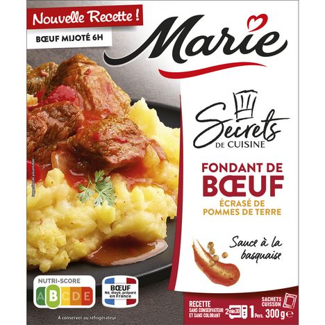 Marie sélectionne de la viande de bœuf origine France garantie par un organisme de contrôle indépendant. Parce que nos chefs ont imaginé des recettes hautes en saveurs, Marie cuit longuement son bœuf dans une sauce basquaise pour une viande tendre.