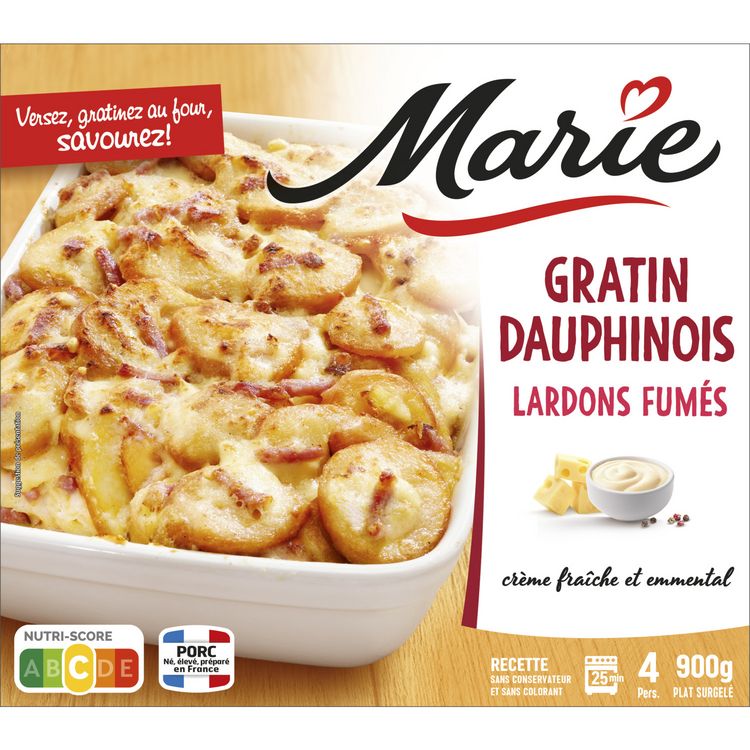 GRATIN DAUPHINOIS AUX LARDONS FUMES CREME FRAICHE ET EMMENTAL MARIE 900G