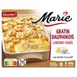 Ingrédients: pommes de terre précuites 52,7% (pommes de terre 52,6%, sel), eau, crème fraîche 14,7%, lardons fumés cuits 4,4% (poitrine de porc origine France, sel, arômes naturels*, antioxydant : acide ascorbique), emmental 3,7%, oignons, amidon de mais, échalotes, sel, ail, muscade, poivre blanc. *Contient naturellement des polyphénols qui contribuent à la préservation de l'oxydation. Pomme de terre : origine UE. Traces possibles de :poisson, crustacés, mollusques, soja, céleri, œuf, moutarde, sésame, céréales contenant du gluten;