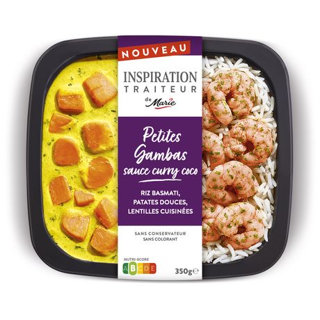 Petites gambas, lentilles au curry et lait de coco, riz basmati 350g MARIE