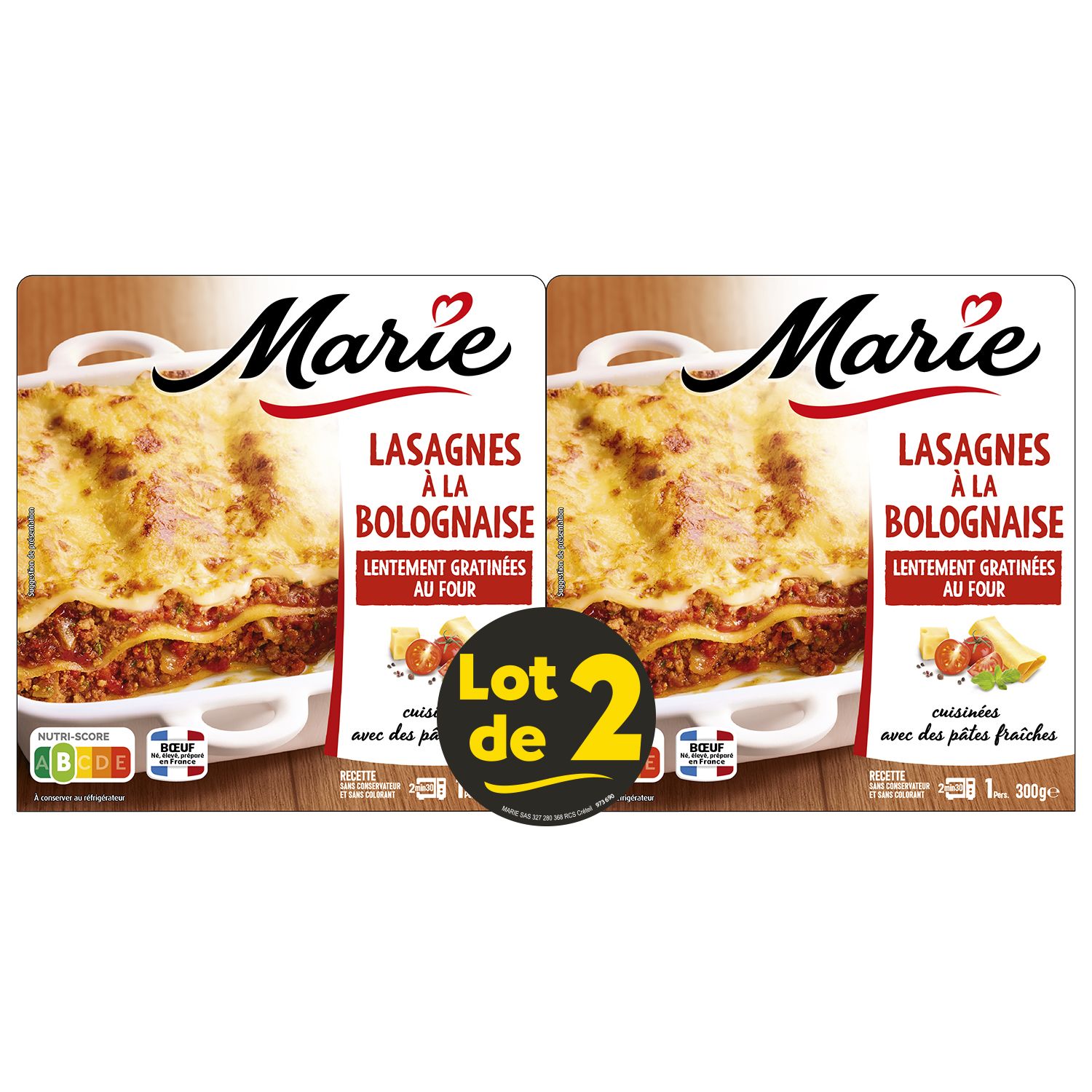 LOT DE 2 LASAGNES A LA BOLOGNAISE, CUISINEES AVEC DES PATES FRAICHES 2X300G MARIE