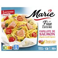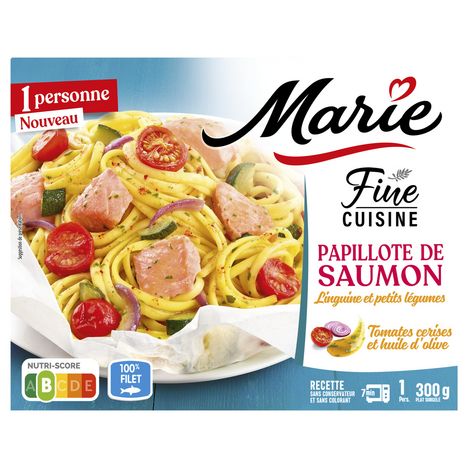 Marie sélectionne du saumon Atlantique 100% filet, surgelé directement après la découpe en filet afin d'en préserver la fraîcheur, la texture et le goût. La cuisson vapeur en papillote préserve la texture délicate du poisson et révèle les saveurs de la recette. Marie s'engage : cette recette est cuisinée sans additif, sans conservateur et sans colorant, pour ne garder que le meilleur des saveurs.