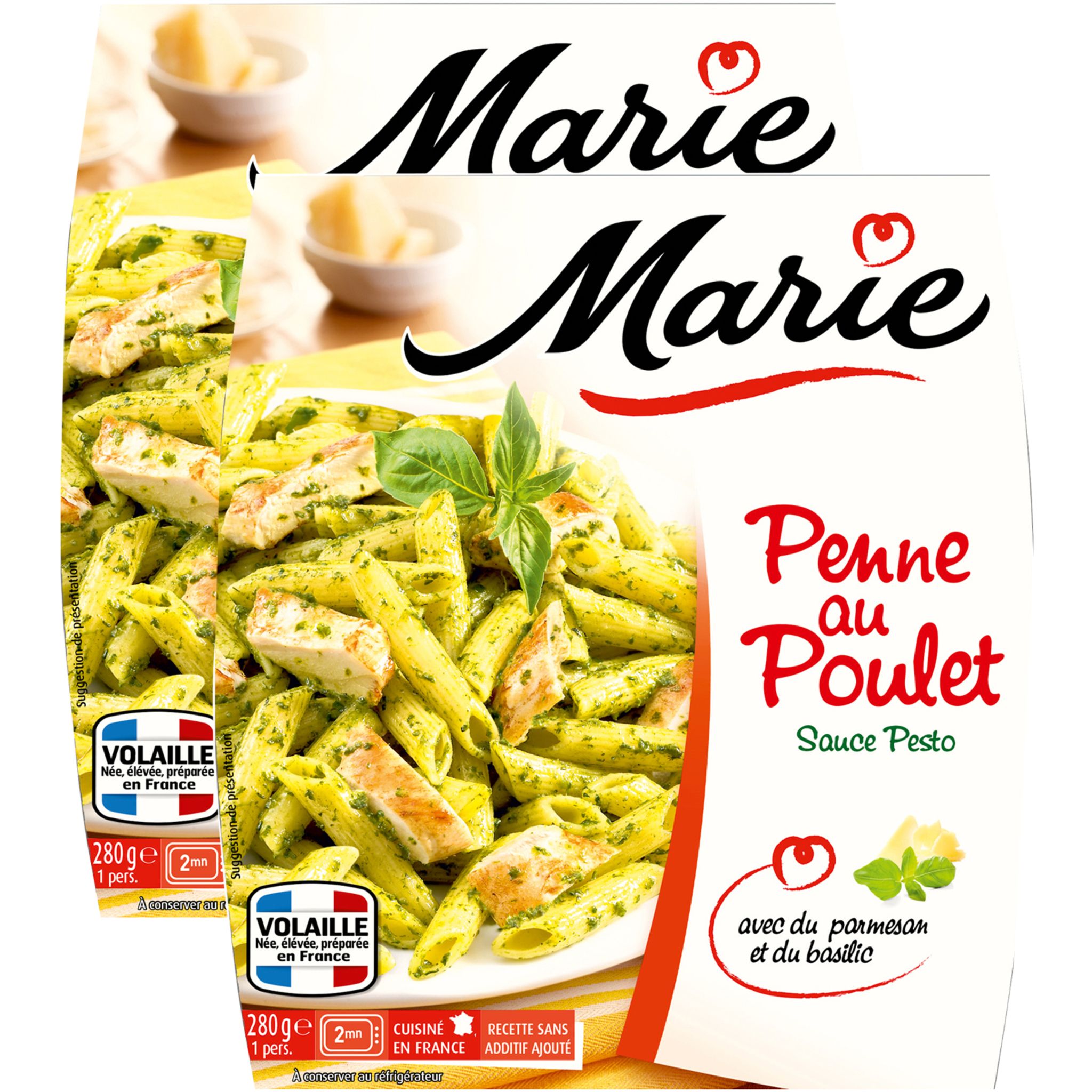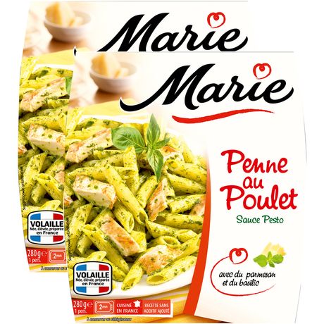 Marie sélectionne du poulet né, élevé et préparé en France. Parce que les recettes les plus simples sont parfois les meilleures, Marie cuisine soigneusement son pesto avec de l’huile d’olive vierge, du basilic et du parmesan. Penne au poulet et au pesto