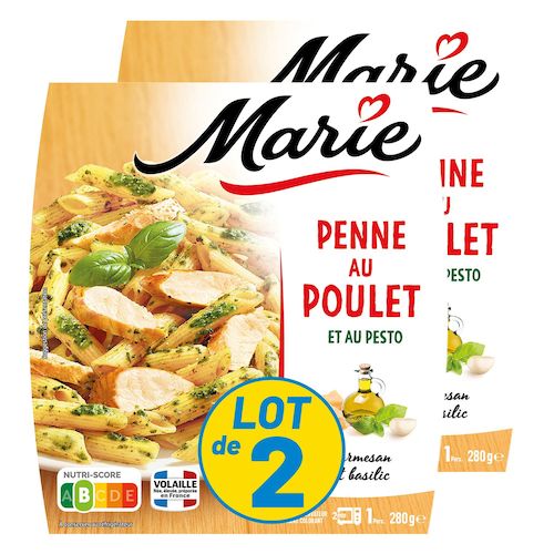 LOT DE 2 PENNE AU POULET ET AU PESTO, PARMESAN ET BASILIC 2X280G MARIE