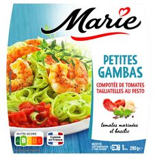 Petites gambas, compotée de tomates, Tagliatelles au pesto, tomates marinées et basilic 280g MARIE