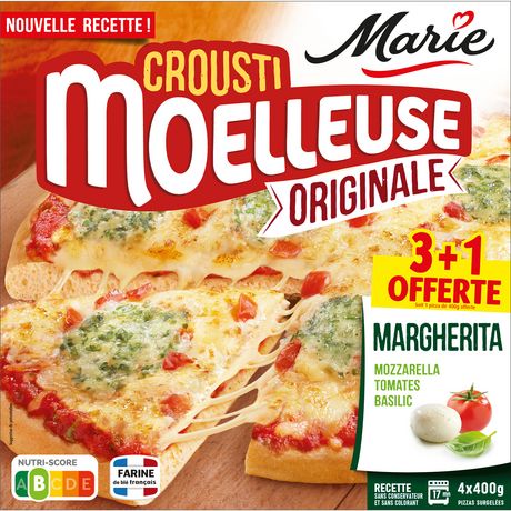 Four: 1. Retirez la pizza du film plastique. 2. Placez la pizza surgelée sur une grille en bas du four sans le préchauffer. Laissez cuire 13 min à 180°C (th.6) en position four traditionnel. 3. Gratinez pendant 3 min en position grill pour une pâte crousti-moelleuse et un fromage bien gratiné. Si votre four ne dispose pas de la fonction grill, laissez chauffer votre pizza 16 min au four à 180°C (th.6) en position four traditionnel. Pour une pâte Crousti-Moelleuse, évitez la position chaleur tournante et le four à micro-ondes.