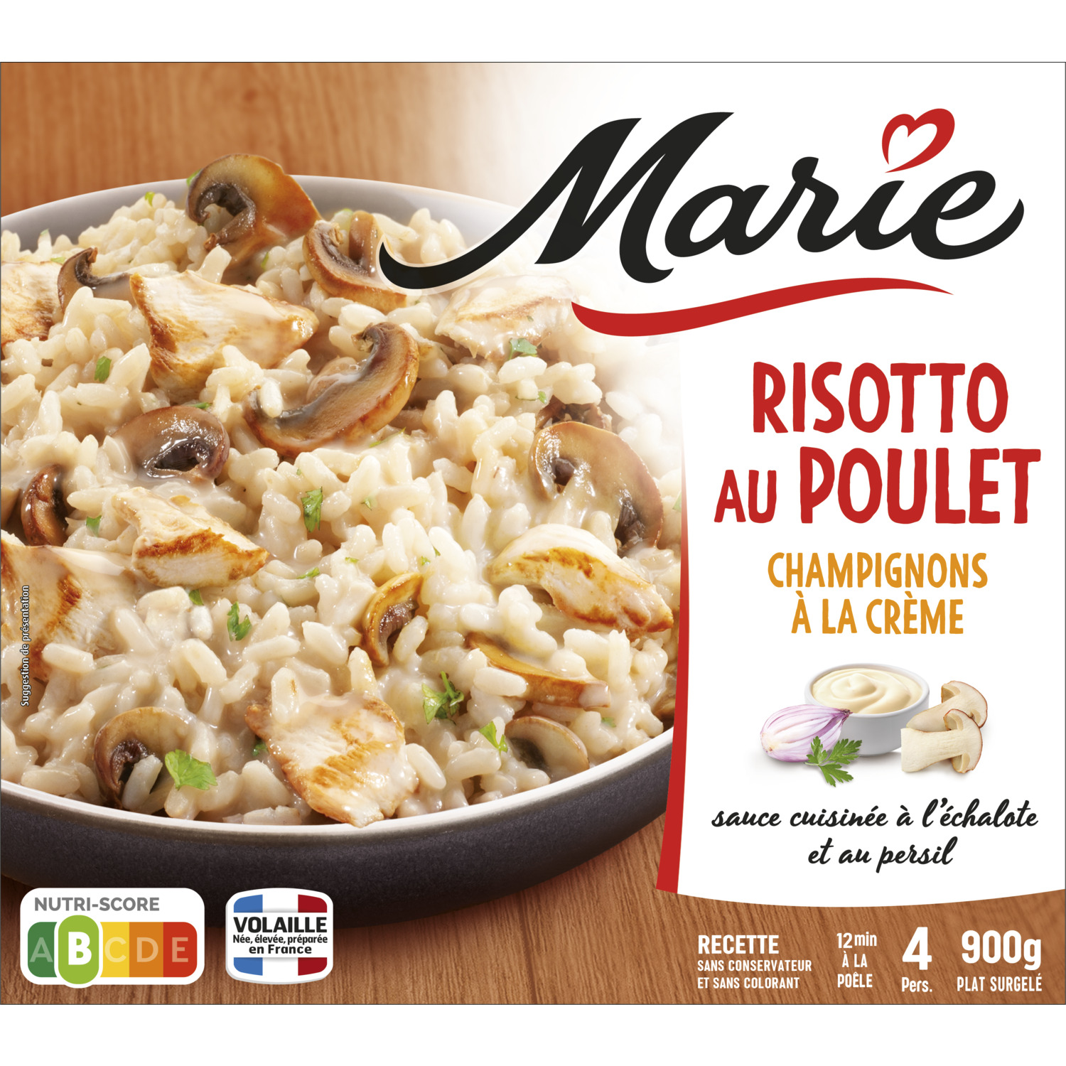 Recette cuisinée: un riz arborio cuisiné avec de la crème, du vin blanc et des émincés de champignons Volaille origine France Qualité de la matière noble : de belles petites escalopes de poulet, généreuses et légèrement dorées