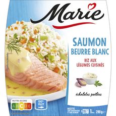 Ingrédients: riz cuit 28,9% (eau, riz), SAUMON 23,8%, eau, carottes 8,6%, poireaux poêlés 7,3% (poireaux, huile de colza, sel), CREME fraîche 4,9%, BEURRE 4,3%, échalotes poêlées 4% (échalotes, huile de colza, sel), vinaigre de Xérès, échalotes 1,6%, farine de BLE, persil, sel, curcuma, piment fort.