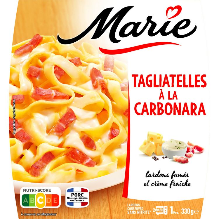 Tagliatelles à la carbonara, lardons fumés et crème fraîche 330g MARIE
