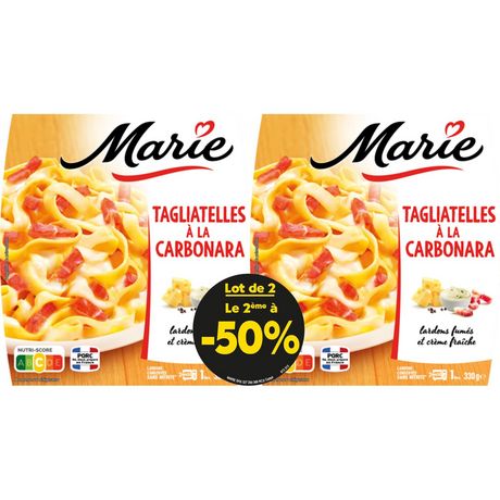 Marie sélectionne de la viande de porc né, élevé et préparé en France. Parce que les recettes les plus simples sont parfois les meilleures, Marie cuisine ses tagliatelles carbonara avec de la crème fraîche et de l'emmental.