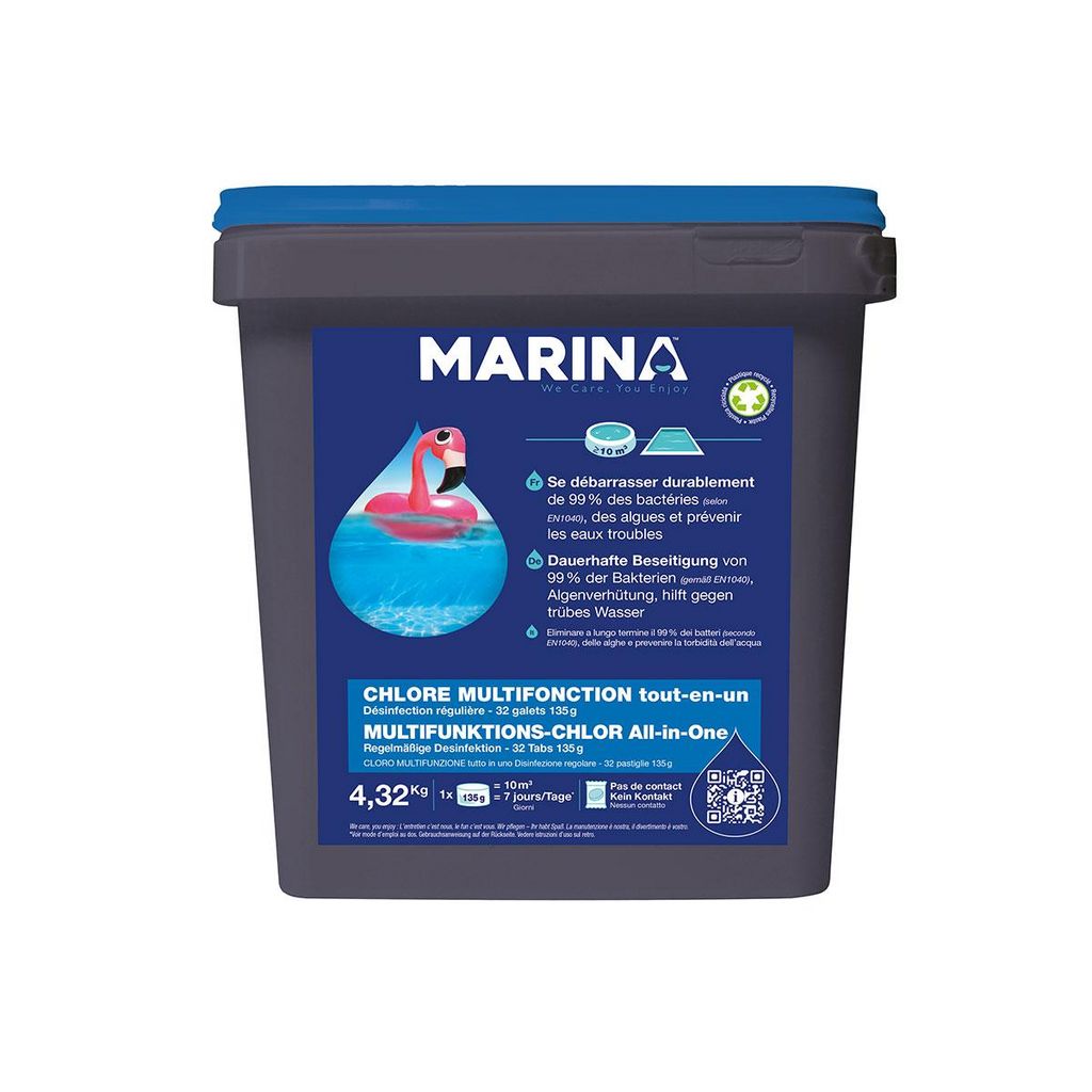 Chlore multifonction galets pour piscine jusqu'à 15 m³ 4,32 kg - Marina