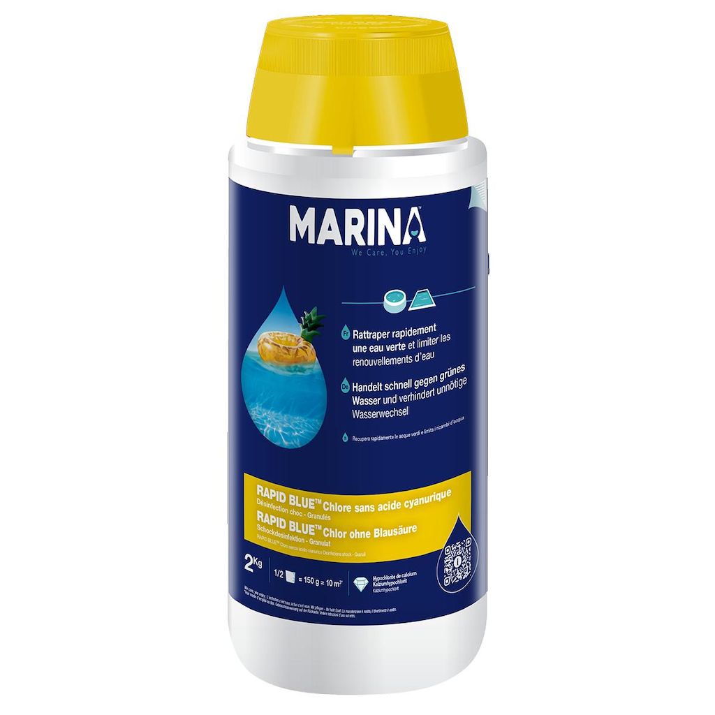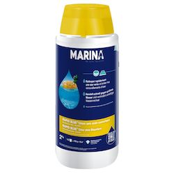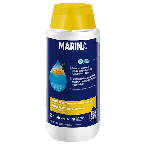Marina 888285 Produit idéal pour rattraper rapidement une eau verte tout en limitant les renouvellements d'eau.Il évite les risques de sur-stabilisation et permet de conserver l'eau du bassin plus longtemps.MARINA RAPID BLUE, rend l'eau pure et scintillante grâce à la présence de calcium.Le saviez v