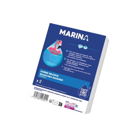 Lot de 2 gommes magiques pour ligne d'eau Marina. Idéal pour nettoyer la ligne d'eau de votre piscine ou de votre spa gonflable. Vendue par lot de 2, elles absorbent les saletés et les graisses sans abimer votre liner.Caractéristiques techniquesCouleur : BlancMarque : MARINAMatière(s) : NCType d'acc