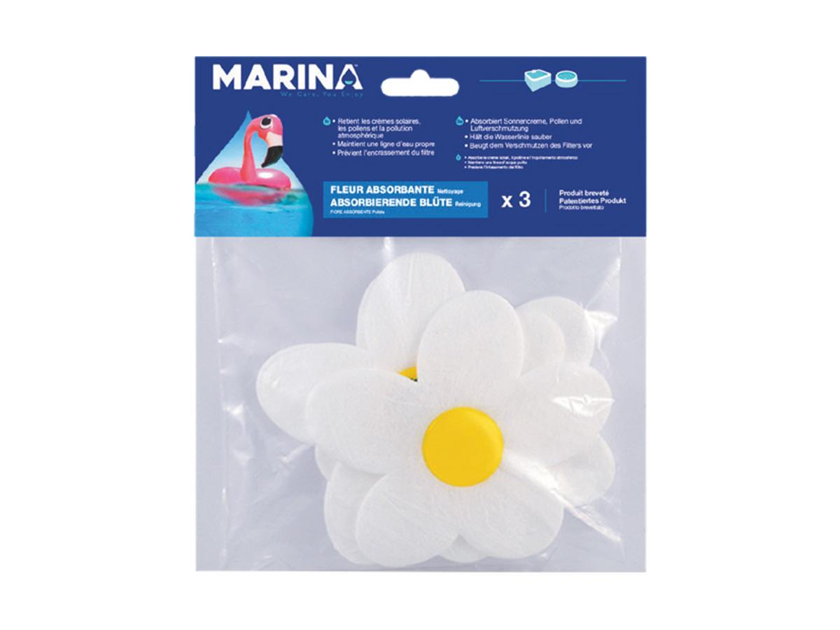 Lot de 3 fleurs absorbantes de la marque Marina. Absorbent les substances grasses présentes dans l'eau de votre spa gonflable et contribuent à garder une eau saine. Idéal pour les spas et jacuzzis gonflable,s mais aussi le spetites piscines.