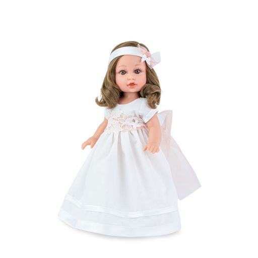 Voici la poupée Sofia du Petit Soleil, habillée élégamment pour une occasion spéciale ! Son visage délicat et ses grands yeux expressifs sont mis en valeur par une robe blanche longue et fluide, complétée par un voile elle porte un serre-tête assorti, ajoutant une touche de grâce et d'élégance. Ce