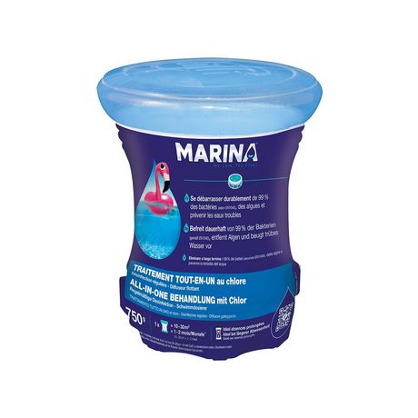 Traitement tout-en-un au chlore en diffuseur flottant 1 à 2 mois pour 10 à 30 m³ - MarinaDésinfection longue duréeDiffusion réglable (système Twist)Dissolution totale sans résiduTeneur élevée en matière activeAction désinfectante longue duréeAction algicideAction clarifianteAction oxydanteNe contien
