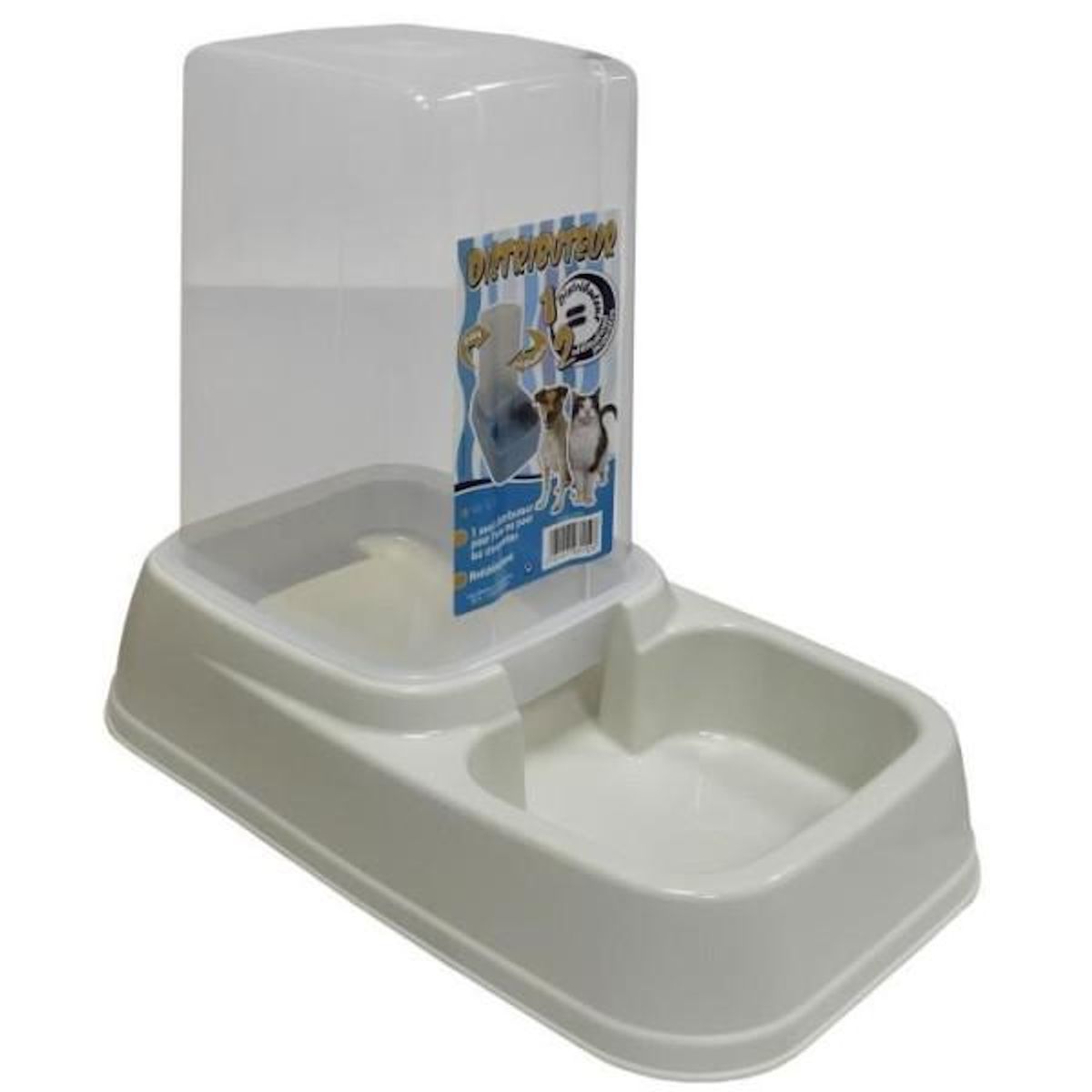 Distributeur double utilisation : peut etre utilisé pour distribuer eau ou nourriture - Contenance : 3,7 L - Pratique, antidérapant, robuste et léger - Facile a transporter - Design et moderne - Pour chat et chien.