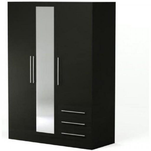 JUPITER Armoire de chambre en bois aggloméré noir - Style et design contemporain - 3 portes dont 1 miroir - 3 tiroirs - Aménagement intérieur : 4 niches et 1 penderie - Dimensions : L 144,6 x P 60 x H 200 cm.