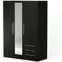 Armoire 3 portes battantes avec miroir + 3 tiroirs - Bois aggloméré - Noir - L 144,6 x P 60 x H 200 cm - JUPITER