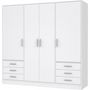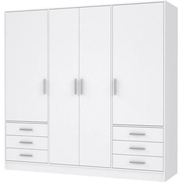 Armoire 4 portes battantes + 6 tiroirs - Bois aggloméré - Blanc mat - L 206,5 x P 60 x H 200 cm - JUPITER