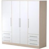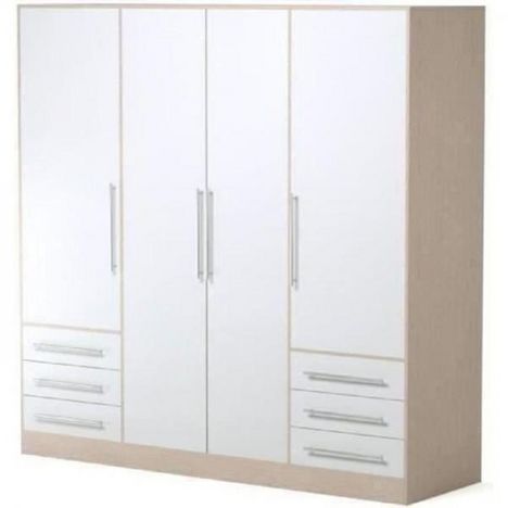 Armoire 4 portes battantes + 6 tiroirs - Chene et blanc - L 206 x P 60 x H 200 cm - JUPITER