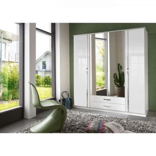 Armoire 4 portes battantes + miroirs - Blanc brillant - L180 x P56 x H199 cm - TRIO