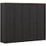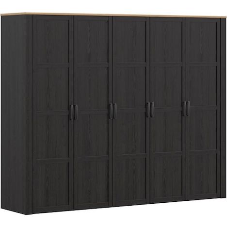 Armoire de chambre - BOHOL - Décor Chene et Noir - 5 portes battantes - L265,6 x P59,6 x H214 cm