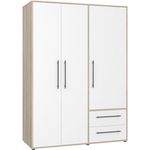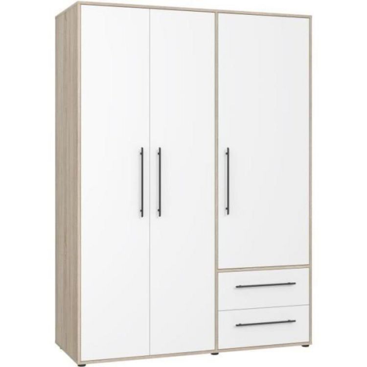 Armoire de chambre - MOKKARIS - Chene Sonoma / Blanc mat - 3 portes - 144,4 x 58,8 x 200,1 cm
